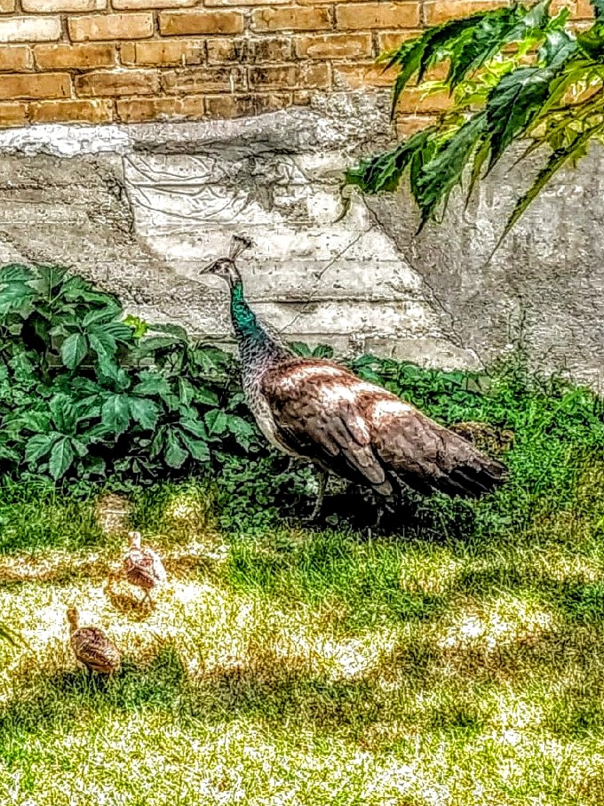 Frankly, Souris (not pronounced like the true French, sooREE, but the bastardized English way of SOORis), is a delightful town, full of tourist attractions, like the famous swinging bridge (longest swinging footbridge in Canada!), and also many unexpected sights, especially in the summer. (After all, who visits their father or anyone in Manitoba in any other season!) Take the peacocks. They own the town, and this time of year, the peahens peck around with their new babies. Look closer at the photo – there’s a couple of chicks. There’s a little museum, a wonderful waterpark-style outdoor swimming pool at the campground by the meandering little river, with drop-in aquasize classes. There’s a deli that makes the best homemade soups, sandwiches, and wood-fired pizzas, served with small-town friendliness and prices. The golf course is surprisingly lush-green and hilly and treed.