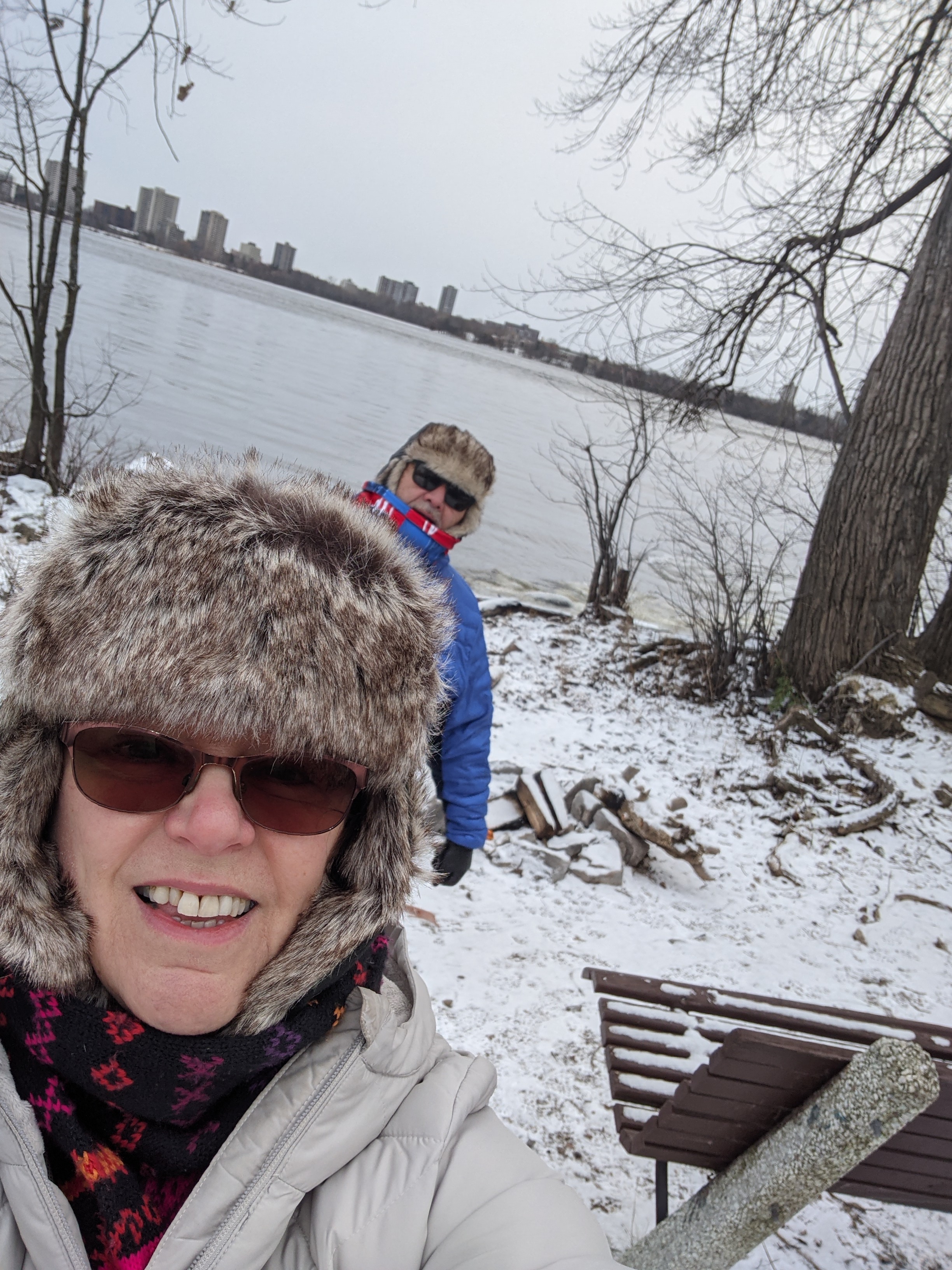 - Dig out my coldest-weather snow pants, boots, furry ear-flapped hat, and heavy leather mitts for all the outdoor activities. Like walking the river. Pledge to do it every day, during daylight, no matter what the weather. Just getting ready takes up more time than you’d think.